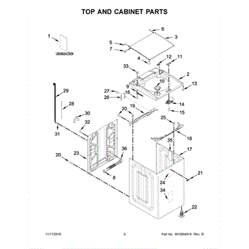 The Top is an OEM part for Whirlpool washing machines. It forms the outer top shell of the washer, providing structure and housing for internal components. The top protects suspension rods, drive motor, controls and other parts while maintaining an attractive aesthetic appearance. It is constructed from durable materials designed to withstand the mechanical stresses of the wash cycle.