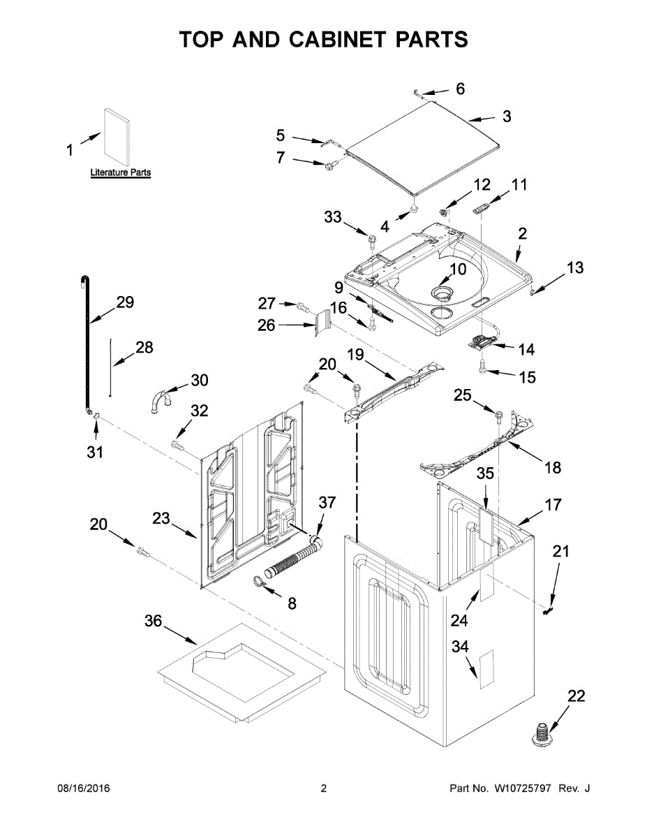 The Lid is an OEM part for Whirlpool washing machines. This part ensures the safety of the user by preventing access to the washing drum during operation but also plays a significant role in maintaining the efficiency of the washing cycle. The lid is engineered to seal the washing machine's top, preventing water spillage and supporting the proper operation of the washer's sensors and switches.