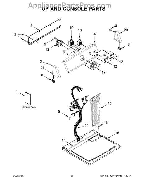 The Console Clip is an OEM part compatible with Whirlpool dryers. This clip secures the control console assembly to the top panel, ensuring it is firmly mounted during operation. Properly functioning clips are necessary to maintain the correct alignment of controls and prevent detachment.