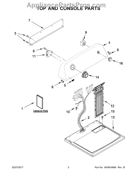The Console Clip is an OEM part compatible with Whirlpool dryers. This clip secures the control console assembly to the top panel, ensuring it is firmly mounted during operation. Properly functioning clips are necessary to maintain the correct alignment of controls and prevent detachment.