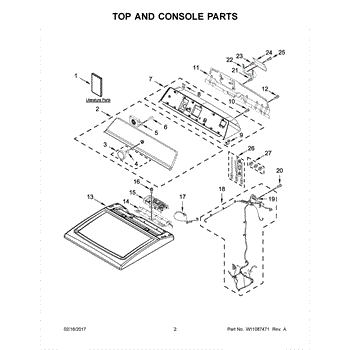 The Console Clip is an OEM part compatible with Whirlpool dryers. This clip secures the control console assembly to the top panel, ensuring it is firmly mounted during operation. Properly functioning clips are necessary to maintain the correct alignment of controls and prevent detachment.