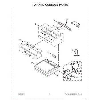 The Console Clip is an OEM part compatible with Whirlpool dryers. This clip secures the control console assembly to the top panel, ensuring it is firmly mounted during operation. Properly functioning clips are necessary to maintain the correct alignment of controls and prevent detachment.