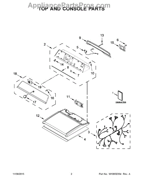 This replacement console is the outer housing that holds the appliance controls and display, restoring a clean, functional control area. It provides a finished appearance and secures the control components in place. What it does:
