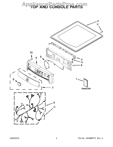 This console shell is the outer housing that covers the dryer control area and delivers a clean, finished appearance while protecting internal controls. It restores the dryer's original look and shields electronics from dust and wear. What it does: