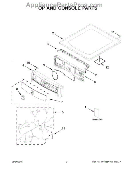 This top panel is the upper cover of your dryer's cabinet. Replace a dented, rusted, or warped panel to restore a secure, flush fit and the clean, finished look of your machine.