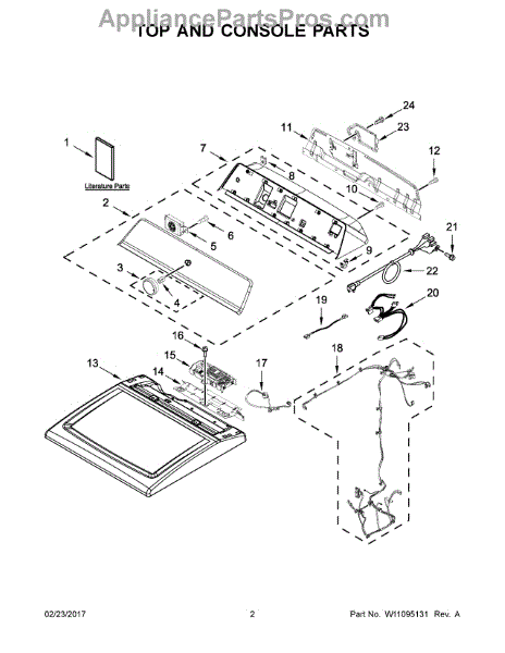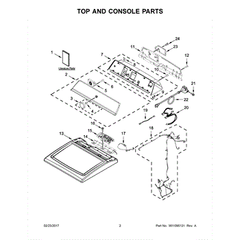 The Console Clip is an OEM part compatible with Whirlpool dryers. This clip secures the control console assembly to the top panel, ensuring it is firmly mounted during operation. Properly functioning clips are necessary to maintain the correct alignment of controls and prevent detachment.