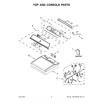 The Console Clip is an OEM part compatible with Whirlpool dryers. This clip secures the control console assembly to the top panel, ensuring it is firmly mounted during operation. Properly functioning clips are necessary to maintain the correct alignment of controls and prevent detachment.