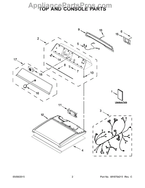 The Top is an OEM replacement part for Whirlpool dryers. It serves as the protective cover for the top of the dryer, keeping dust and debris out while providing a finished look. It is designed to withstand the demands of daily use and provides a sturdy surface for placing items on top of the dryer.