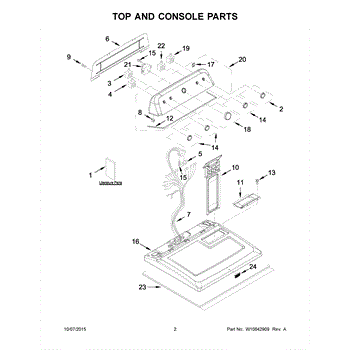 The Console Clip is an OEM part compatible with Whirlpool dryers. This clip secures the control console assembly to the top panel, ensuring it is firmly mounted during operation. Properly functioning clips are necessary to maintain the correct alignment of controls and prevent detachment.