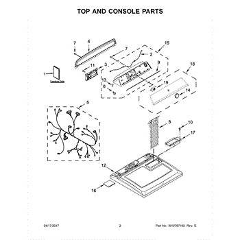 The Console Clip is an OEM part compatible with Whirlpool dryers. This clip secures the control console assembly to the top panel, ensuring it is firmly mounted during operation. Properly functioning clips are necessary to maintain the correct alignment of controls and prevent detachment.