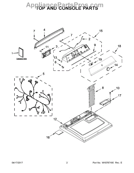 This replacement console is the outer housing that holds the appliance controls and display, restoring a clean, functional control area. It provides a finished appearance and secures the control components in place. What it does: