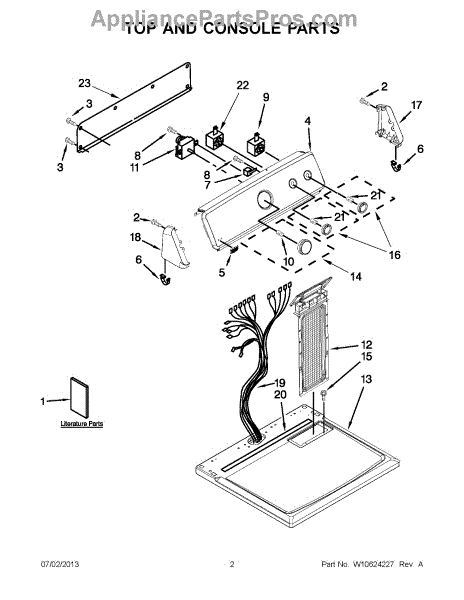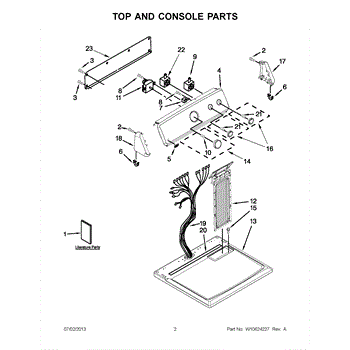 The Console Clip is an OEM part compatible with Whirlpool dryers. This clip secures the control console assembly to the top panel, ensuring it is firmly mounted during operation. Properly functioning clips are necessary to maintain the correct alignment of controls and prevent detachment.