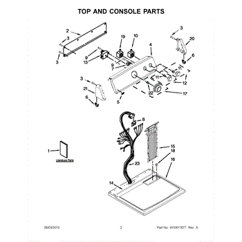 The Console Clip is an OEM part compatible with Whirlpool dryers. This clip secures the control console assembly to the top panel, ensuring it is firmly mounted during operation. Properly functioning clips are necessary to maintain the correct alignment of controls and prevent detachment.