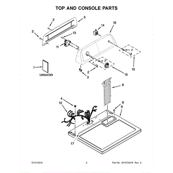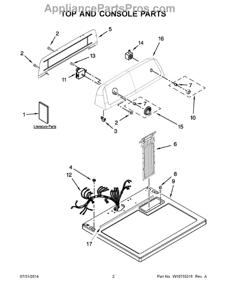 The Console Clip is an OEM part compatible with Whirlpool dryers. This clip secures the control console assembly to the top panel, ensuring it is firmly mounted during operation. Properly functioning clips are necessary to maintain the correct alignment of controls and prevent detachment.