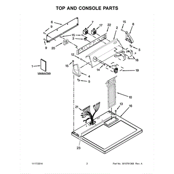 The Console Clip is an OEM part compatible with Whirlpool dryers. This clip secures the control console assembly to the top panel, ensuring it is firmly mounted during operation. Properly functioning clips are necessary to maintain the correct alignment of controls and prevent detachment.