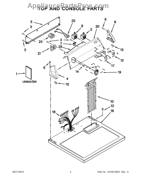 The Console Clip is an OEM part compatible with Whirlpool dryers. This clip secures the control console assembly to the top panel, ensuring it is firmly mounted during operation. Properly functioning clips are necessary to maintain the correct alignment of controls and prevent detachment.