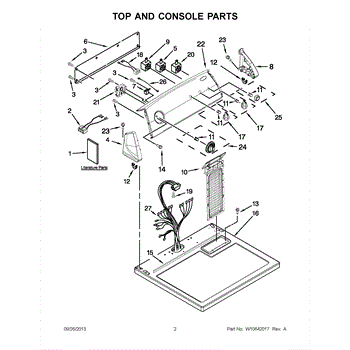 The Console Clip is an OEM part compatible with Whirlpool dryers. This clip secures the control console assembly to the top panel, ensuring it is firmly mounted during operation. Properly functioning clips are necessary to maintain the correct alignment of controls and prevent detachment.