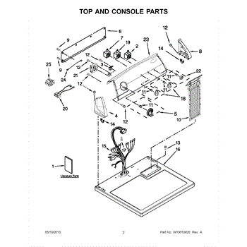 The Console Clip is an OEM part compatible with Whirlpool dryers. This clip secures the control console assembly to the top panel, ensuring it is firmly mounted during operation. Properly functioning clips are necessary to maintain the correct alignment of controls and prevent detachment.
