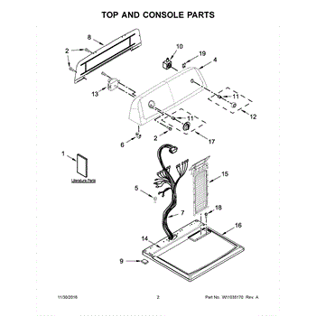 The Console Clip is an OEM part compatible with Whirlpool dryers. This clip secures the control console assembly to the top panel, ensuring it is firmly mounted during operation. Properly functioning clips are necessary to maintain the correct alignment of controls and prevent detachment.