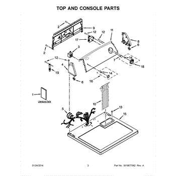 The Console Clip is an OEM part compatible with Whirlpool dryers. This clip secures the control console assembly to the top panel, ensuring it is firmly mounted during operation. Properly functioning clips are necessary to maintain the correct alignment of controls and prevent detachment.