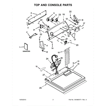 The Console Clip is an OEM part compatible with Whirlpool dryers. This clip secures the control console assembly to the top panel, ensuring it is firmly mounted during operation. Properly functioning clips are necessary to maintain the correct alignment of controls and prevent detachment.