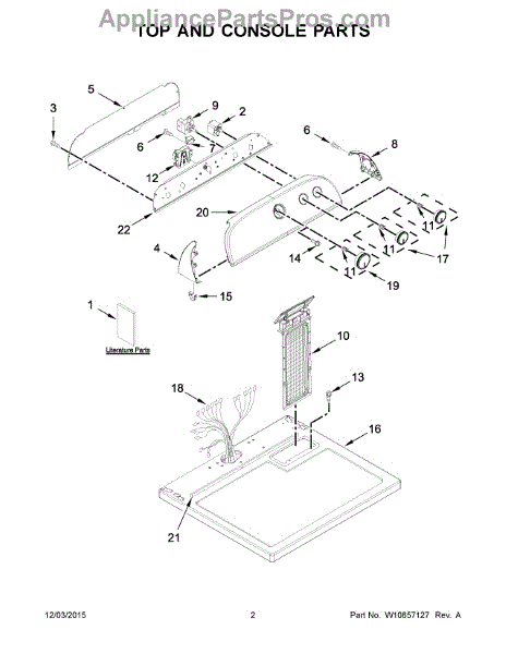 This control panel is the exterior console that houses the washer/dryer controls and user interface, restoring a clean, functional front for the appliance. It replaces a damaged or worn panel to improve operation and appearance. What it does: