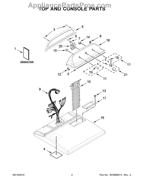 The Console Clip is an OEM part compatible with Whirlpool dryers. This clip secures the control console assembly to the top panel, ensuring it is firmly mounted during operation. Properly functioning clips are necessary to maintain the correct alignment of controls and prevent detachment.