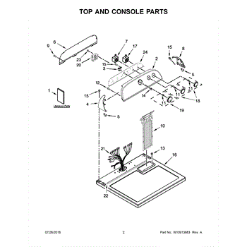 The Console Clip is an OEM part compatible with Whirlpool dryers. This clip secures the control console assembly to the top panel, ensuring it is firmly mounted during operation. Properly functioning clips are necessary to maintain the correct alignment of controls and prevent detachment.