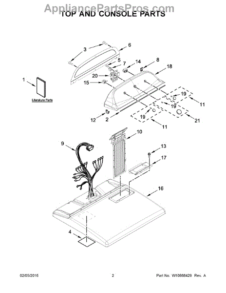The Console Clip is an OEM part compatible with Whirlpool dryers. This clip secures the control console assembly to the top panel, ensuring it is firmly mounted during operation. Properly functioning clips are necessary to maintain the correct alignment of controls and prevent detachment.