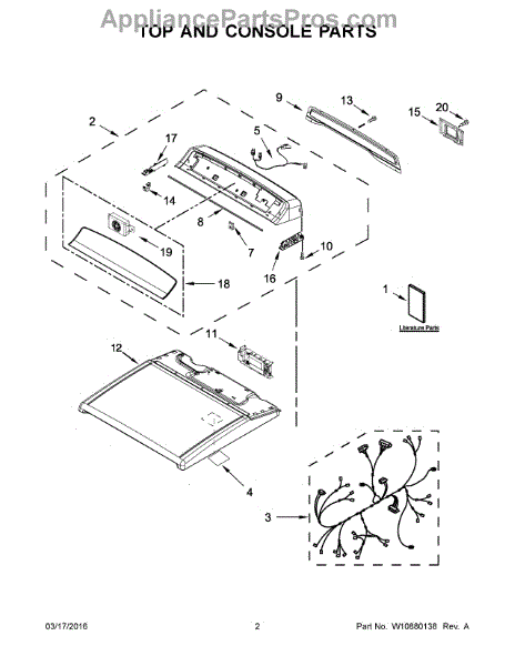 This replacement wire harness connects electrical components to restore reliable power and signal paths in select Whirlpool appliances. Use it to replace a damaged or worn harness that causes intermittent operation or loss of function. What it does: