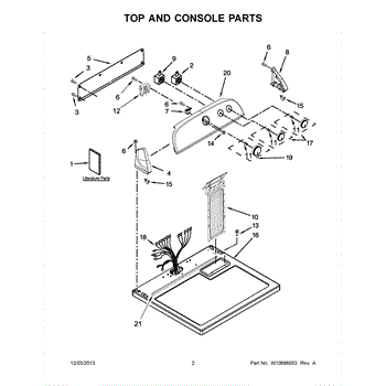 The Console Clip is an OEM part compatible with Whirlpool dryers. This clip secures the control console assembly to the top panel, ensuring it is firmly mounted during operation. Properly functioning clips are necessary to maintain the correct alignment of controls and prevent detachment.