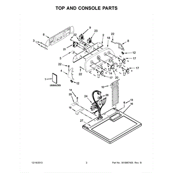 The Console Clip is an OEM part compatible with Whirlpool dryers. This clip secures the control console assembly to the top panel, ensuring it is firmly mounted during operation. Properly functioning clips are necessary to maintain the correct alignment of controls and prevent detachment.