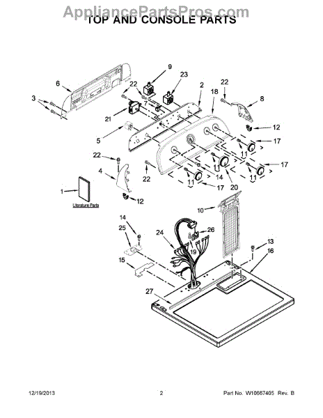 The Dryer Timer is an OEM part for Whirlpool dryers. It controls the drying cycles by regulating the duration and sequence of operations, ensuring that clothes are dried properly according to the selected settings.