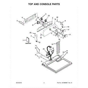 The Console Clip is an OEM part compatible with Whirlpool dryers. This clip secures the control console assembly to the top panel, ensuring it is firmly mounted during operation. Properly functioning clips are necessary to maintain the correct alignment of controls and prevent detachment.
