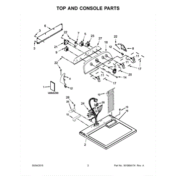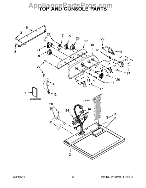 Main top panel assembly that forms the finished top surface of your dryer. Replace if cracked, discolored, damaged, or worn to restore appearance.