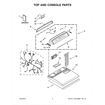 The Console Clip is an OEM part compatible with Whirlpool dryers. This clip secures the control console assembly to the top panel, ensuring it is firmly mounted during operation. Properly functioning clips are necessary to maintain the correct alignment of controls and prevent detachment.