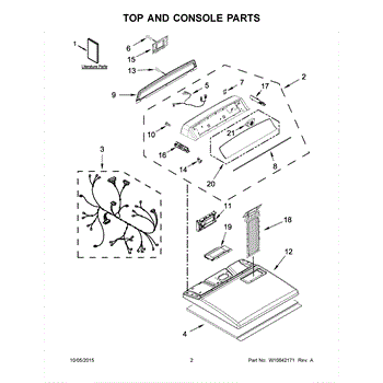 The Console Clip is an OEM part compatible with Whirlpool dryers. This clip secures the control console assembly to the top panel, ensuring it is firmly mounted during operation. Properly functioning clips are necessary to maintain the correct alignment of controls and prevent detachment.