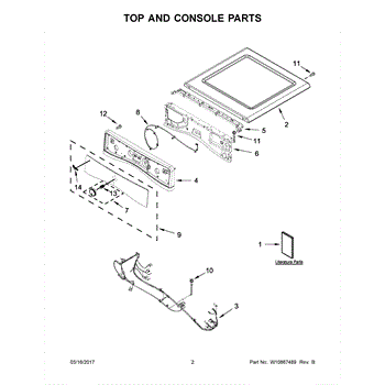 This top panel is the upper cover of your dryer's cabinet. Replace a dented, rusted, or warped panel to restore a secure, flush fit and the clean, finished look of your machine.
