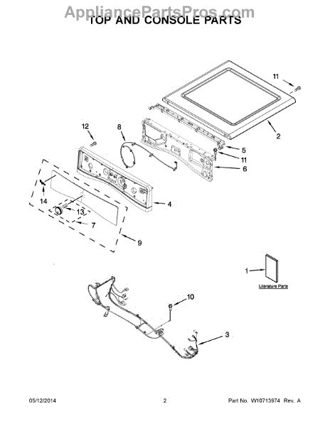 This top panel is the upper cover of your dryer's cabinet. Replace a dented, rusted, or warped panel to restore a secure, flush fit and the clean, finished look of your machine.