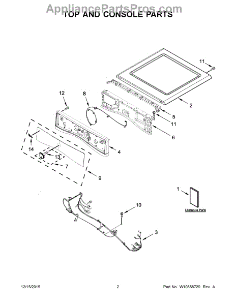 This top panel is the upper cover of your dryer's cabinet. Replace a dented, rusted, or warped panel to restore a secure, flush fit and the clean, finished look of your machine.