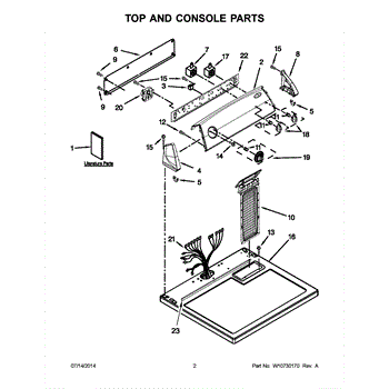 The Console Clip is an OEM part compatible with Whirlpool dryers. This clip secures the control console assembly to the top panel, ensuring it is firmly mounted during operation. Properly functioning clips are necessary to maintain the correct alignment of controls and prevent detachment.