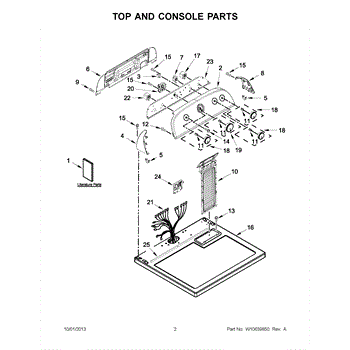 Main top panel assembly that forms the finished top surface of your dryer. Replace if cracked, discolored, damaged, or worn to restore appearance.