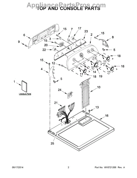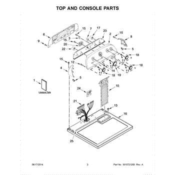 Main top panel assembly that forms the finished top surface of your dryer. Replace if cracked, discolored, damaged, or worn to restore appearance.