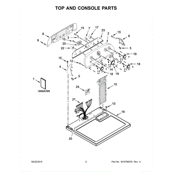 The Console Clip is an OEM part compatible with Whirlpool dryers. This clip secures the control console assembly to the top panel, ensuring it is firmly mounted during operation. Properly functioning clips are necessary to maintain the correct alignment of controls and prevent detachment.