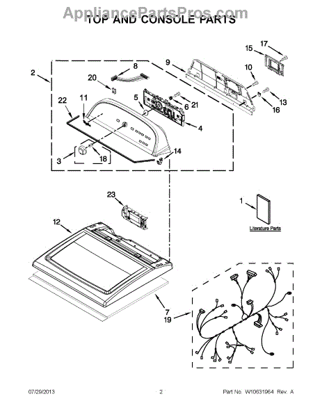This replacement top panel restores the appliance's outer cabinet for a clean appearance and to protect internal components from dust and debris. It fits above the main cabinet and provides the finished surface beneath controls. What it does: