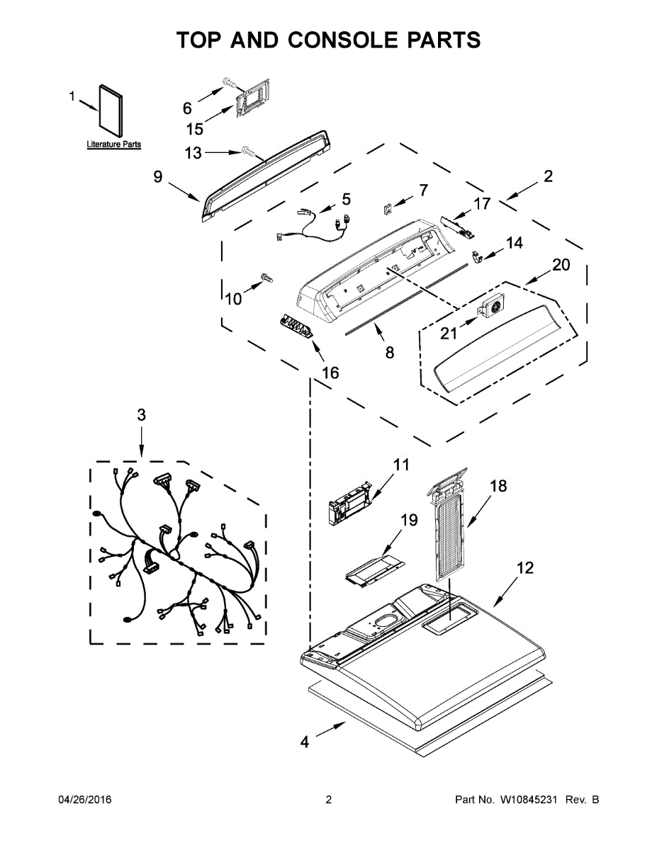 The Console Clip is an OEM part compatible with Whirlpool dryers. This clip secures the control console assembly to the top panel, ensuring it is firmly mounted during operation. Properly functioning clips are necessary to maintain the correct alignment of controls and prevent detachment.