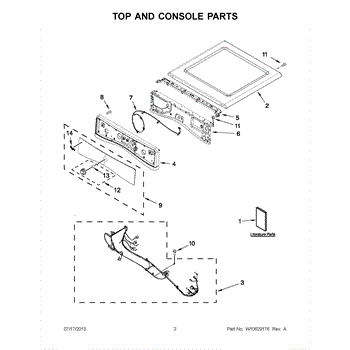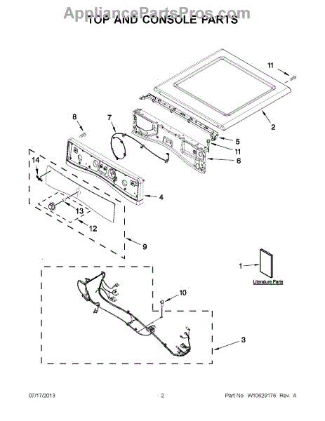 This top panel is the upper cover of your dryer's cabinet. Replace a dented, rusted, or warped panel to restore a secure, flush fit and the clean, finished look of your machine.