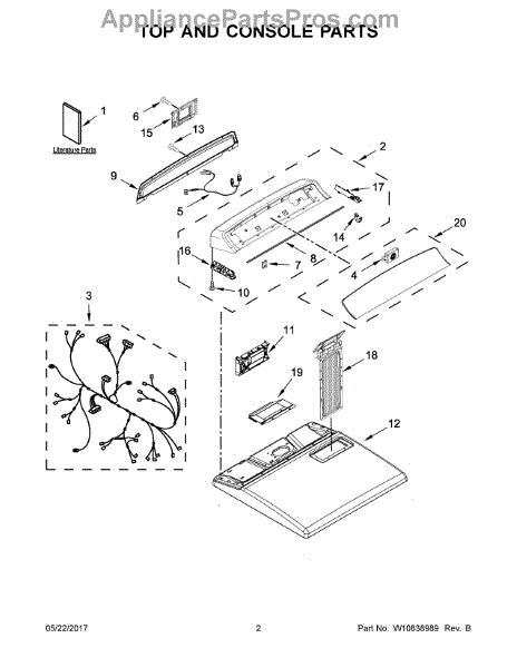 The Console is an OEM part for Whirlpool electric dryers. This console houses the dryer control panel, buttons, toggle switches and electronic display.