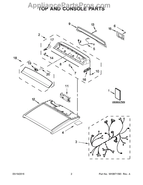 The Console is an OEM part for Whirlpool electric dryers. This console houses the dryer control panel, buttons, toggle switches and electronic display.
