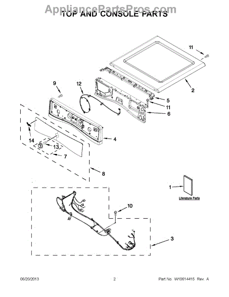 This top panel is the upper cover of your dryer's cabinet. Replace a dented, rusted, or warped panel to restore a secure, flush fit and the clean, finished look of your machine.
